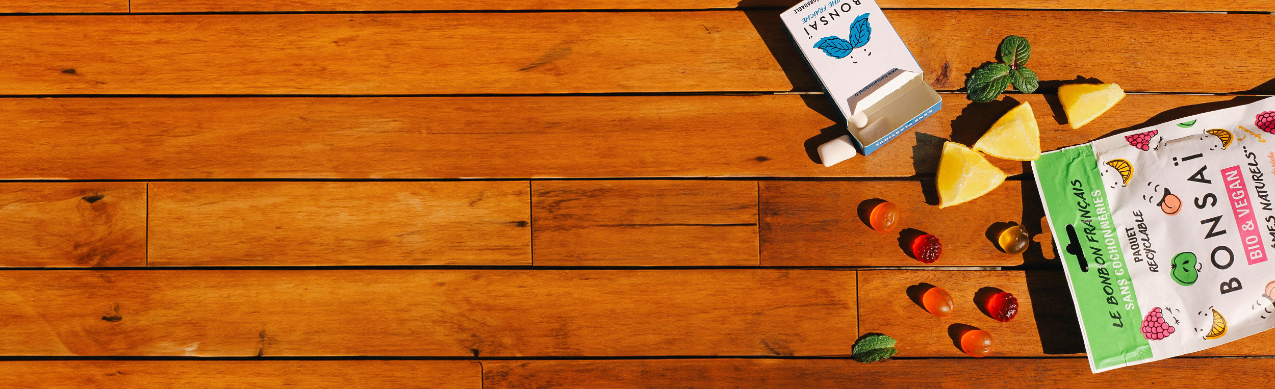 Made entirely of organic matter, Bonsai chewing gum is naturally biodegradable and non-polluting, for a chew that leaves no traces.