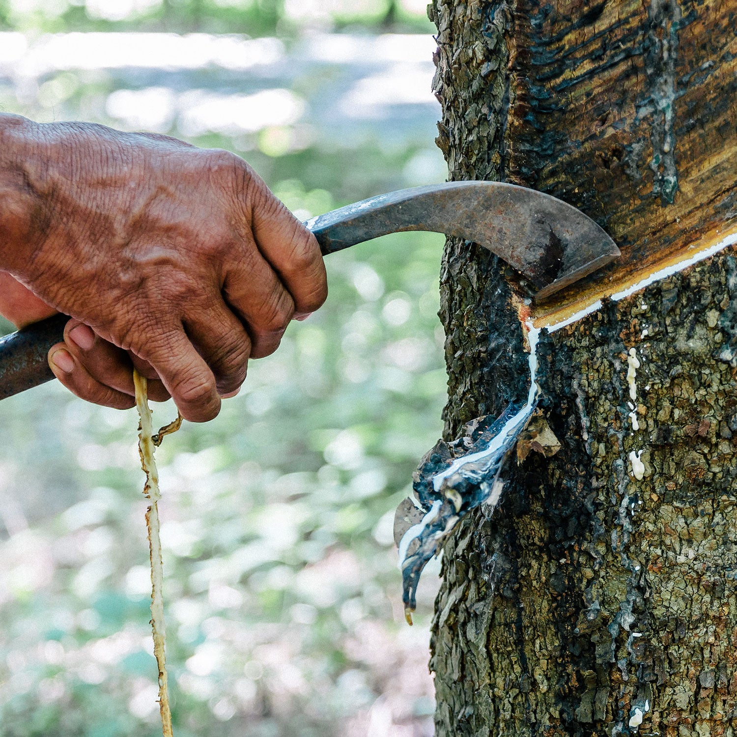 We just went back to basics. We work with local artisans who make small cuts in the bark of trees to collect the sap. This extraction process respects the forest because no trees are felled during this process, and the trees are given time to regenerate before carrying out new sap extractions. Once reworked, this natural gum has a consistency identical to that of classic industrial chewing gum.